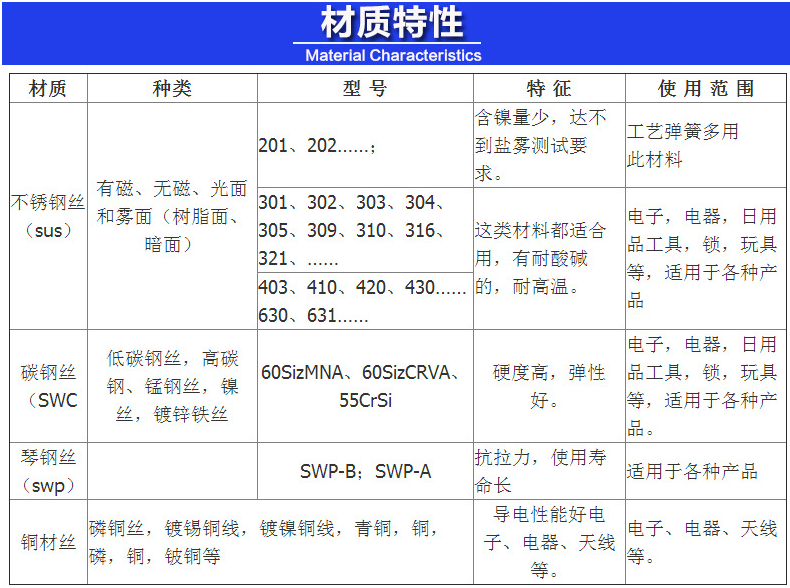 波形彈簧制作時使用的材料及其用